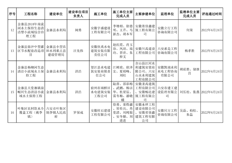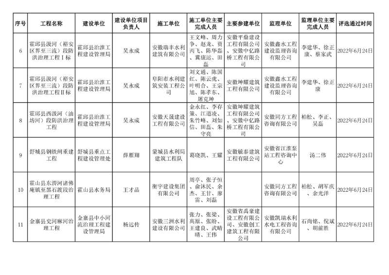 附件:2022年度六安市建设工程“皋城杯”奖(水利类)获奖名单