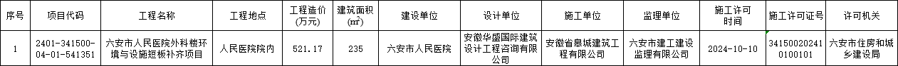 六安市住建局2024年10月行政许可结果(建筑工程施工许可证)(一)