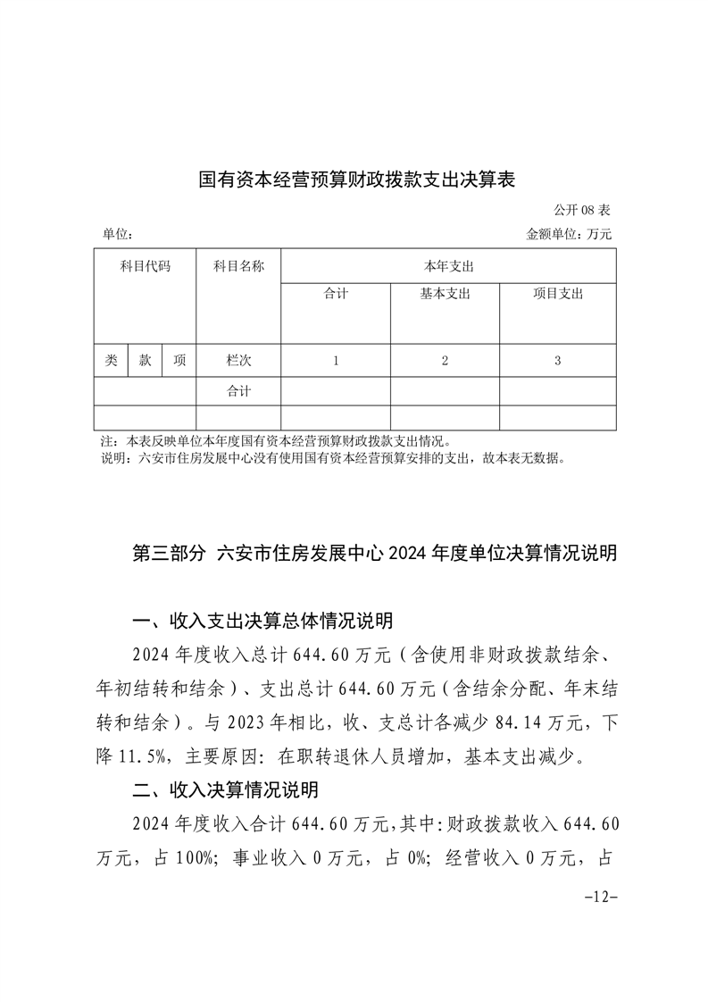 六安市住房发展中心2024年度单位决算
