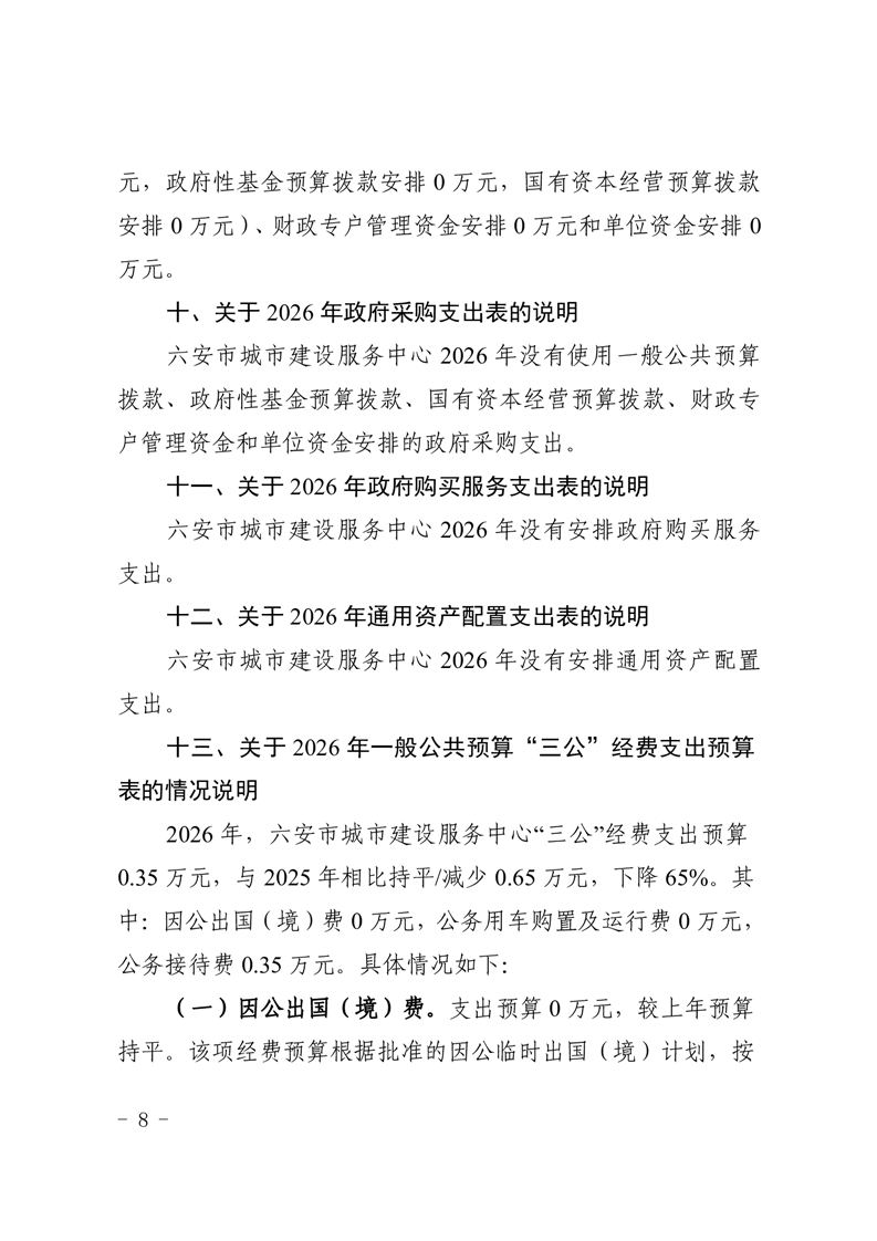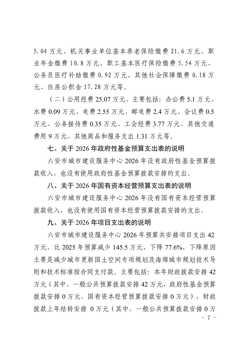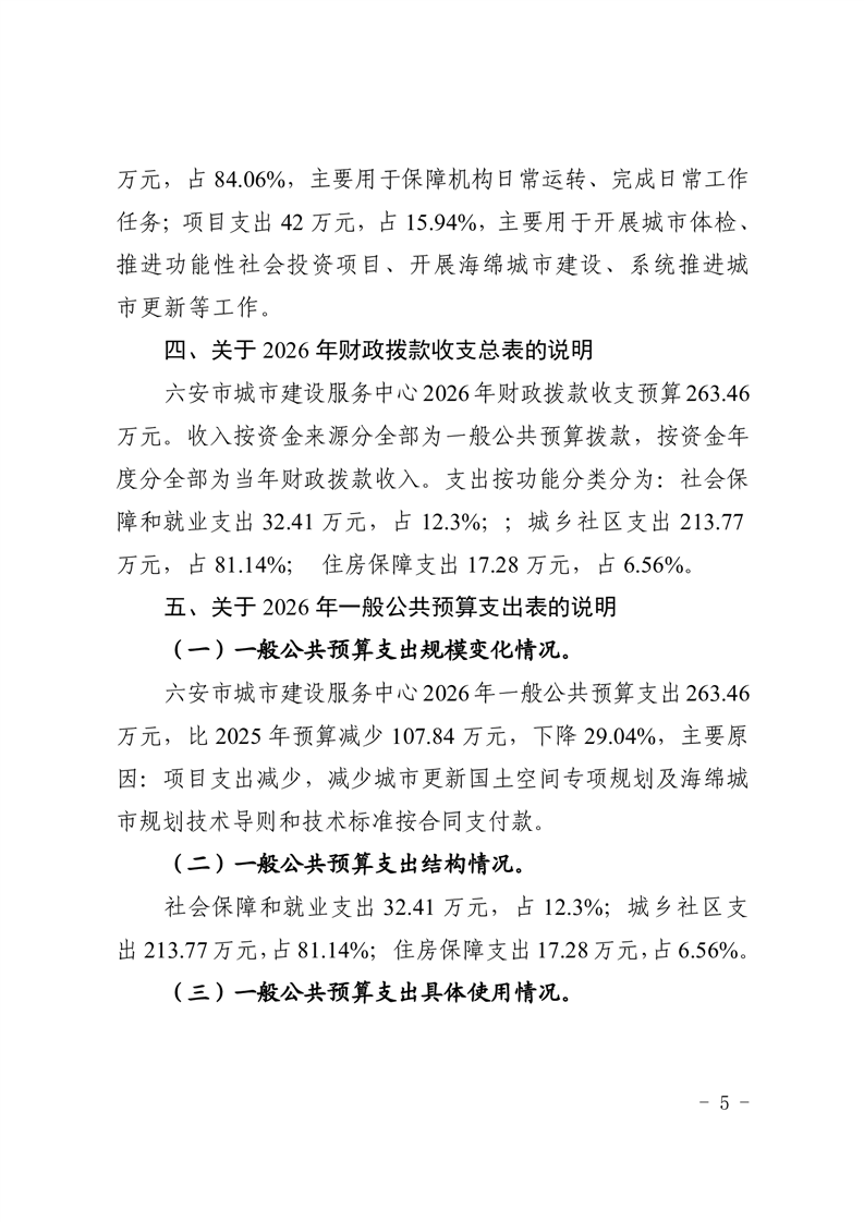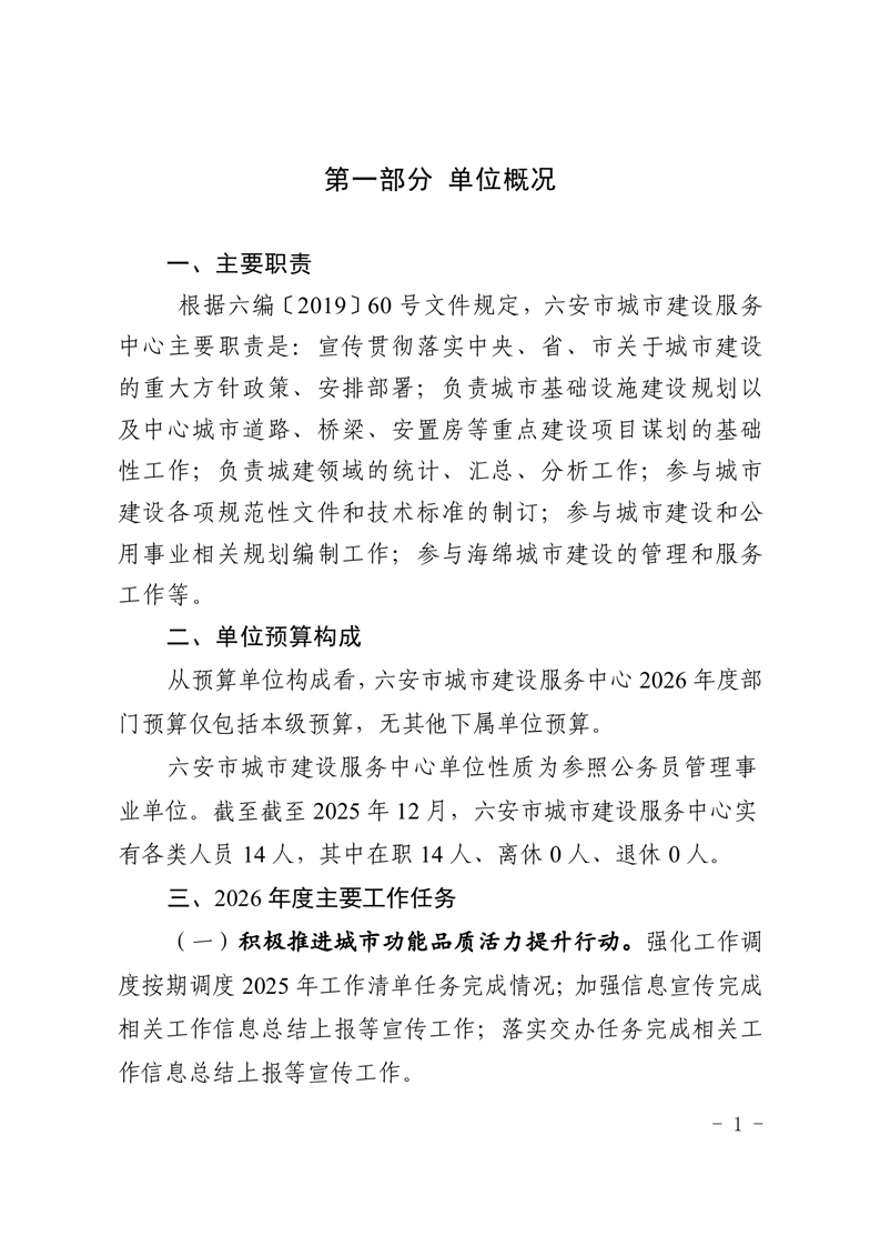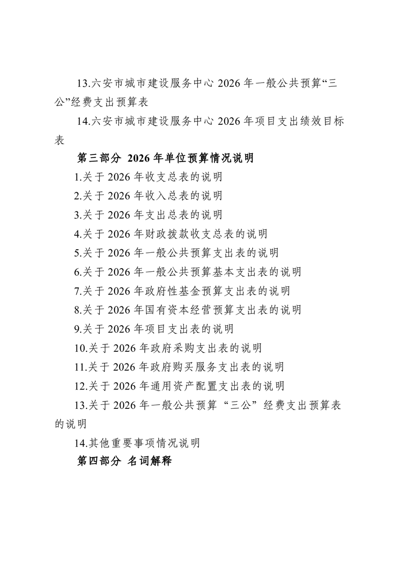 六安市城市建设服务中心2026年单位预算