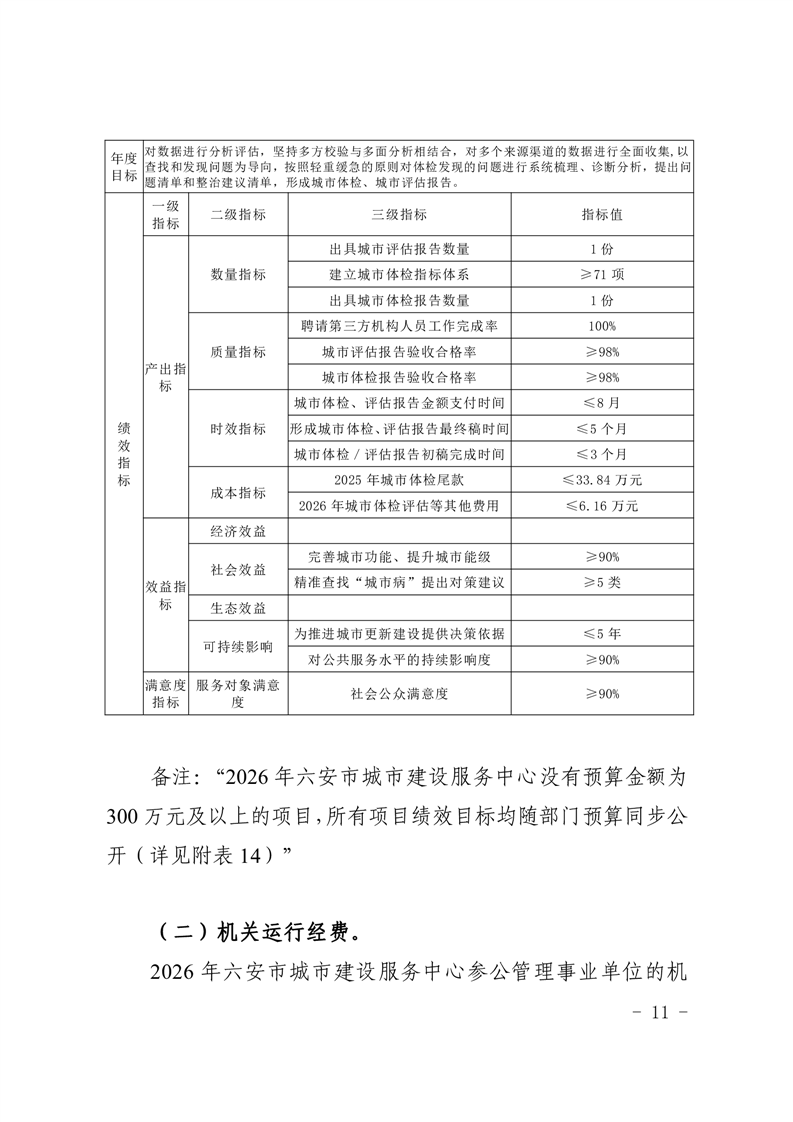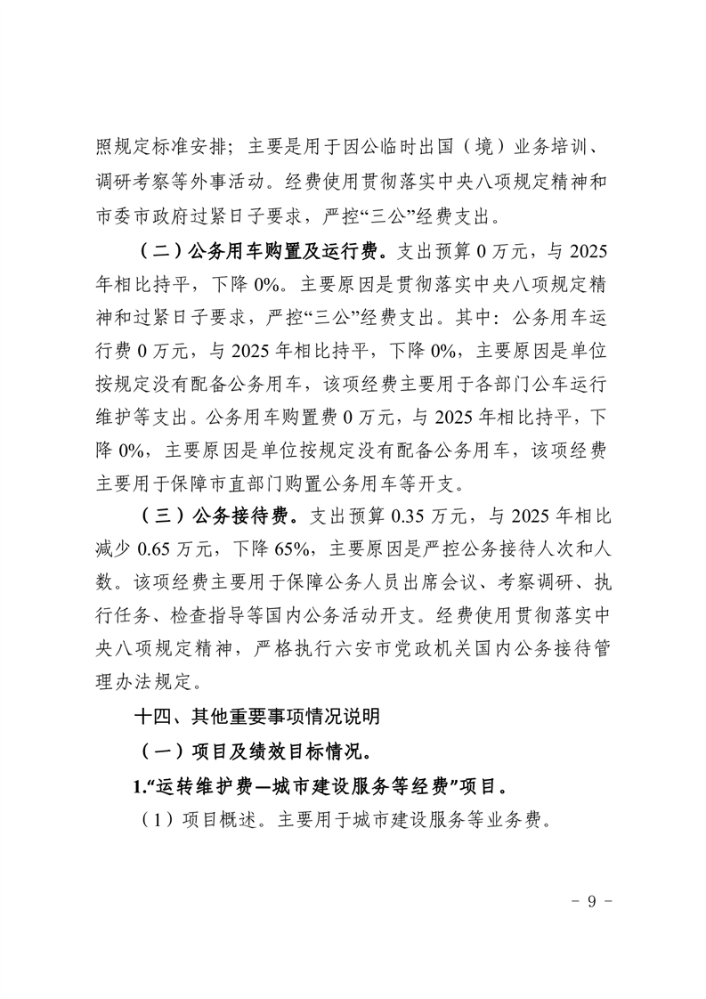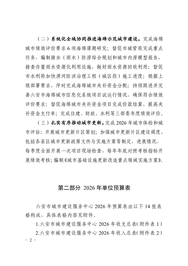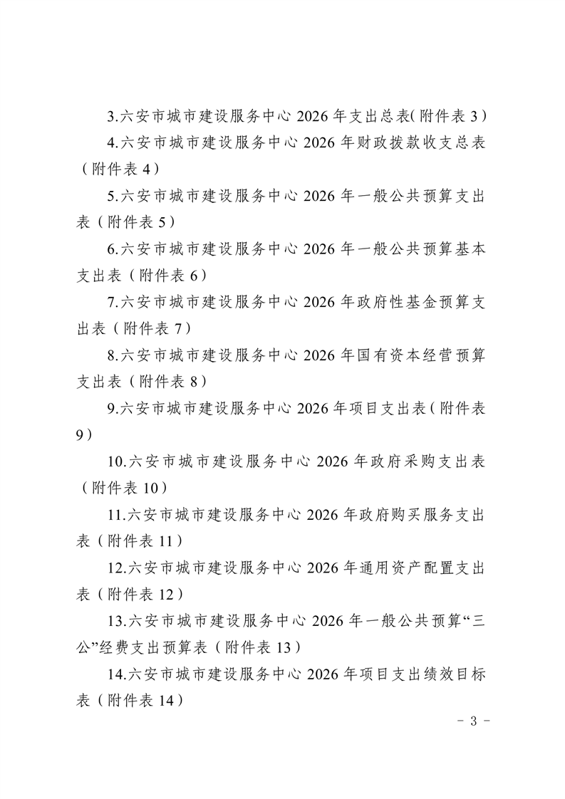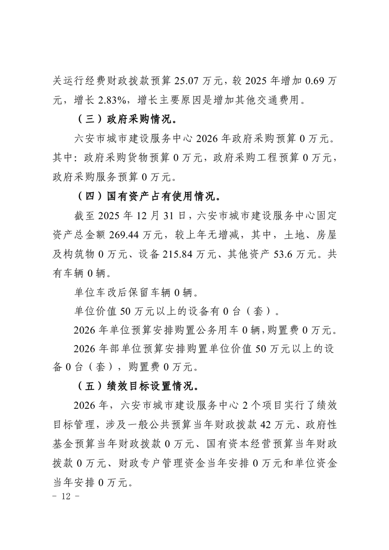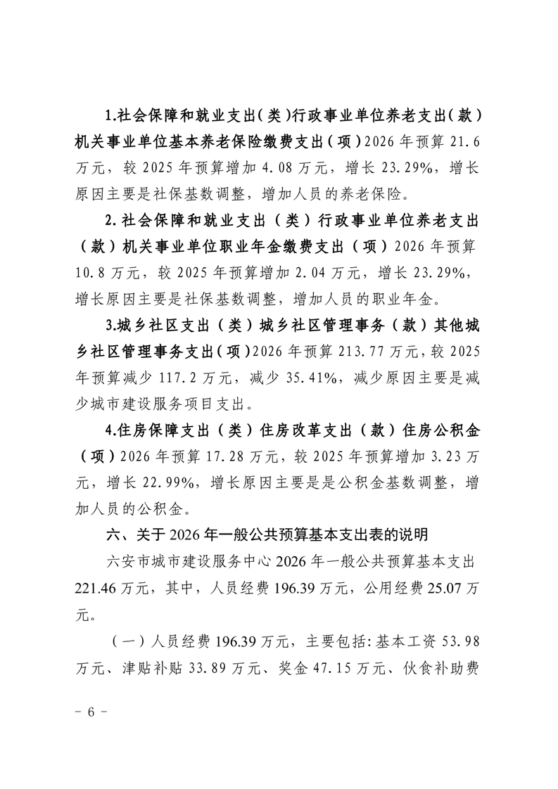 六安市城市建设服务中心2026年单位预算