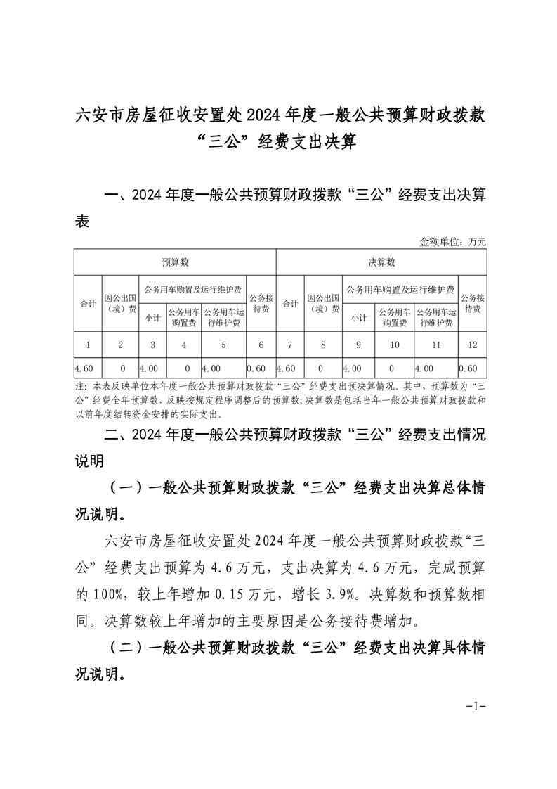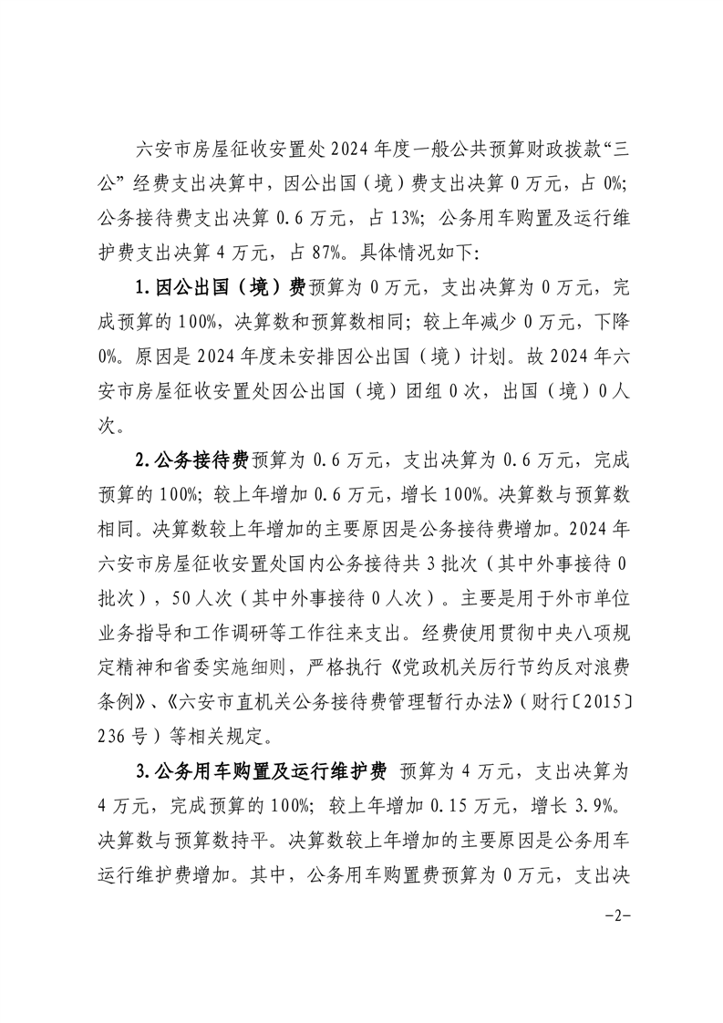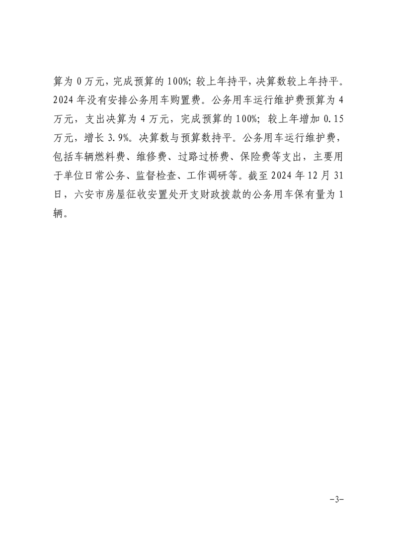 六安市房屋征收安置处2024年度一般公共预算财政拨款“三公”经费支出决算