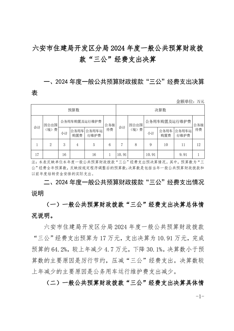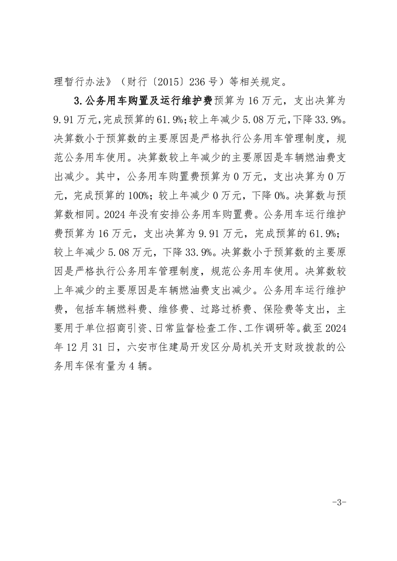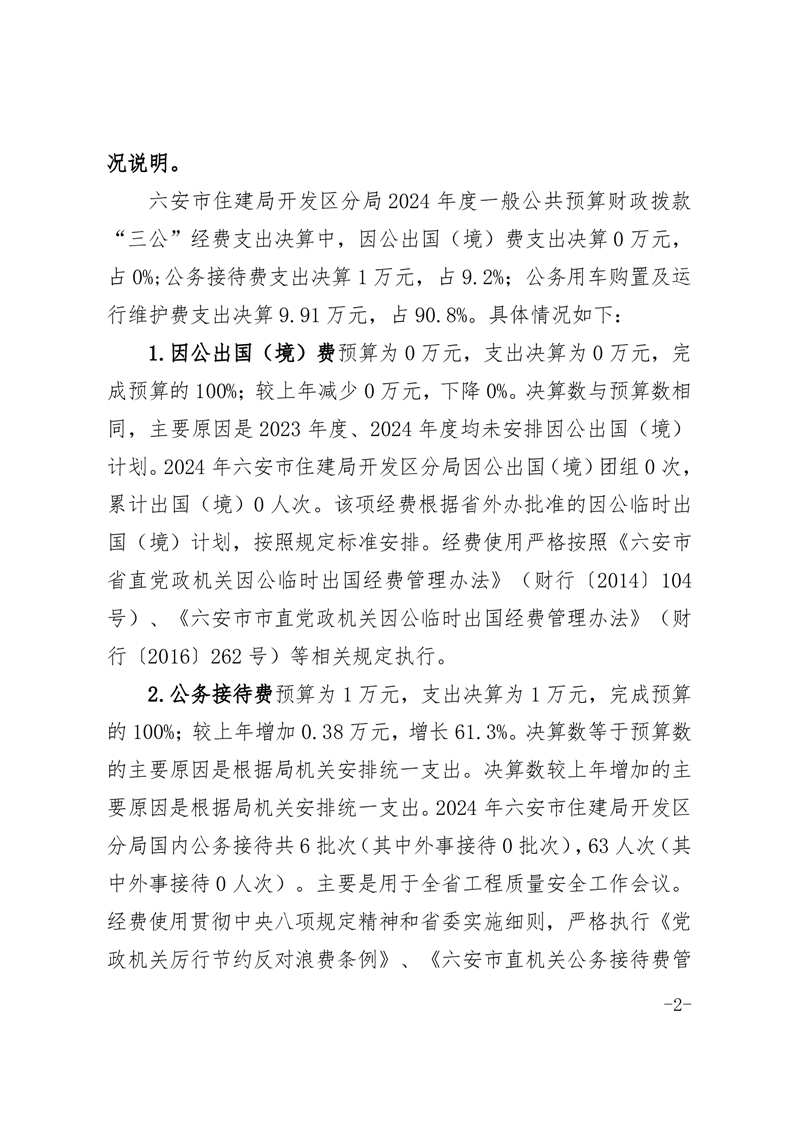 六安市住建局开发区分局2024年度一般公共预算财政拨款“三公”经费支出决算