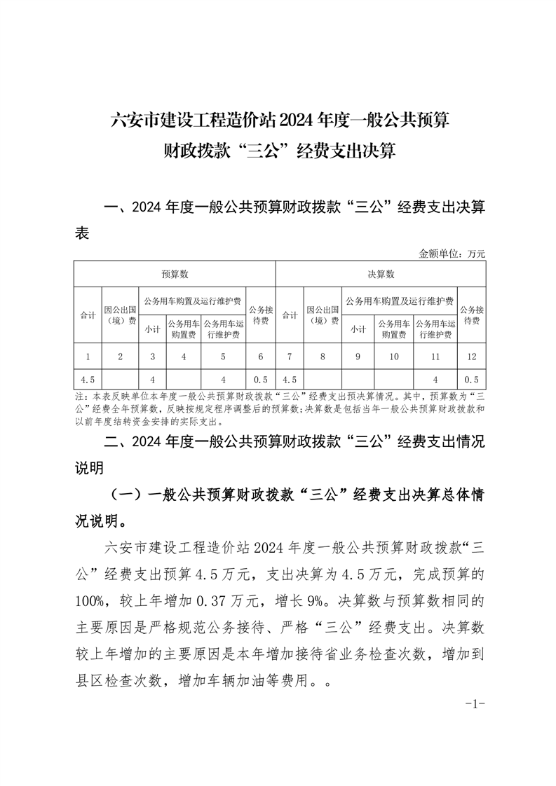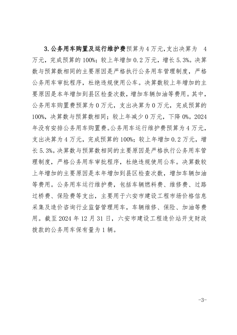 六安市建设工程造价站2024 年度一般公共预算财政拨款“三公”经费支出决算