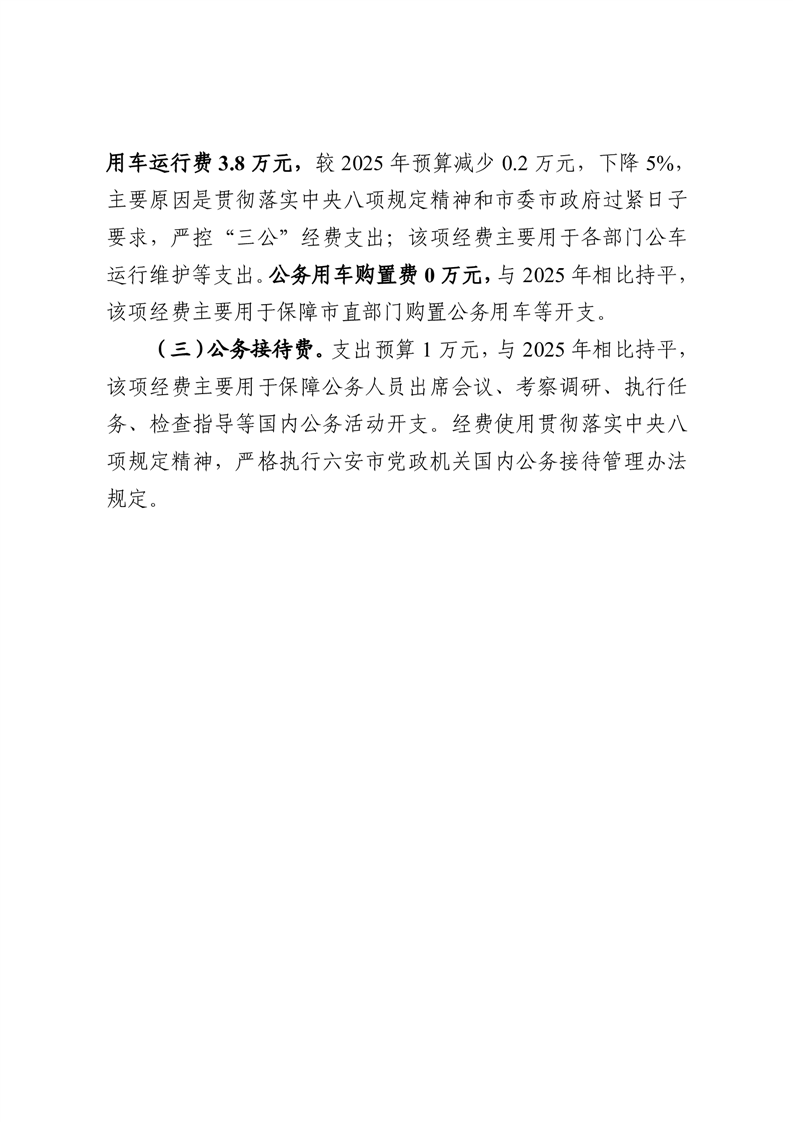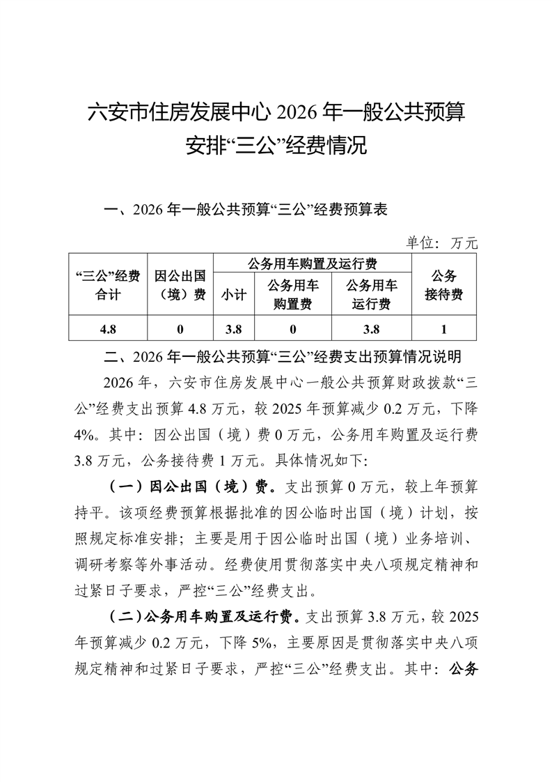 六安市住房发展中心 2026 年一般公共预算安排“三公”经费情况