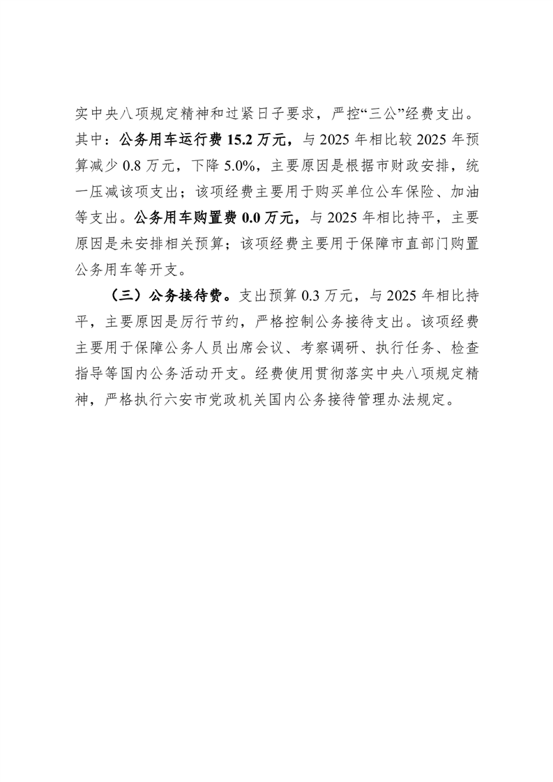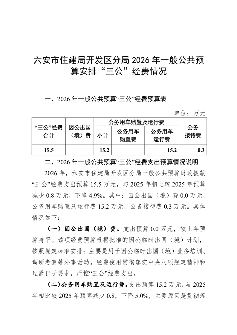 六安市住建局开发区分局2026年单位一般公共预算安排“三公”经费情况
