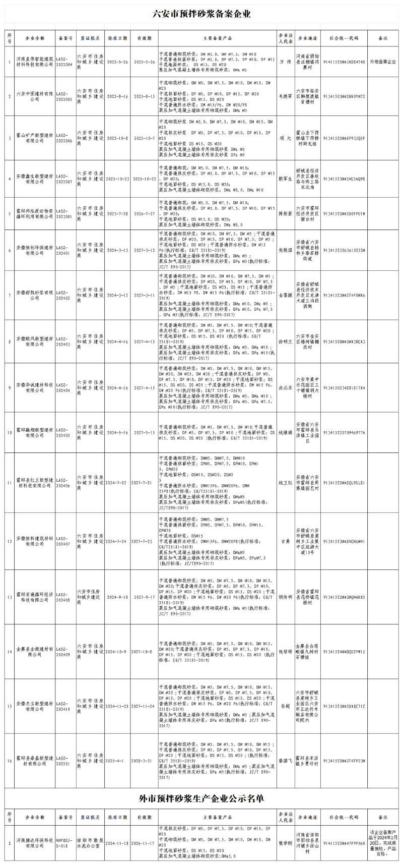 六安市住房和城乡建设局2025年3月其他权力结果(预拌砂浆生产企业备案)