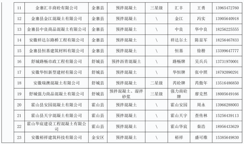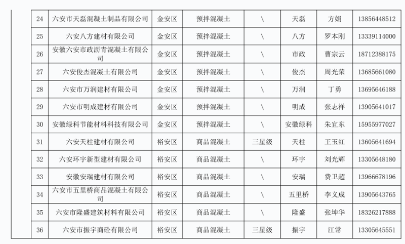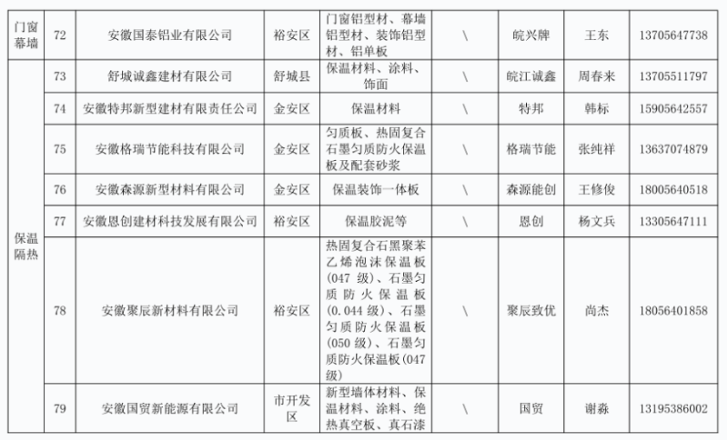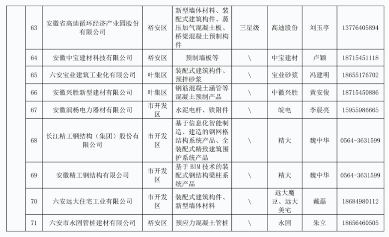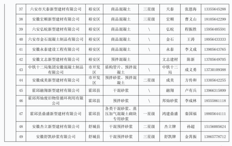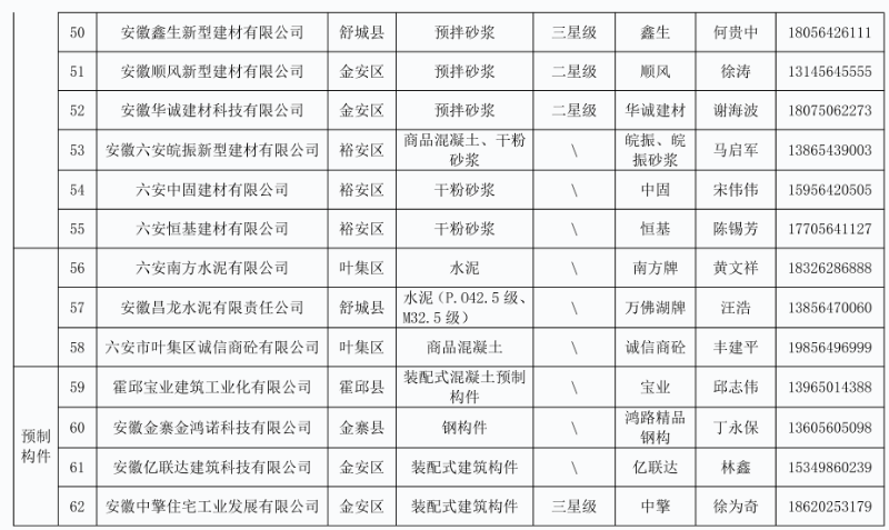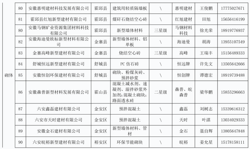 列入六安市本地建筑工程建材企业产品目录(第十三批)企业名单