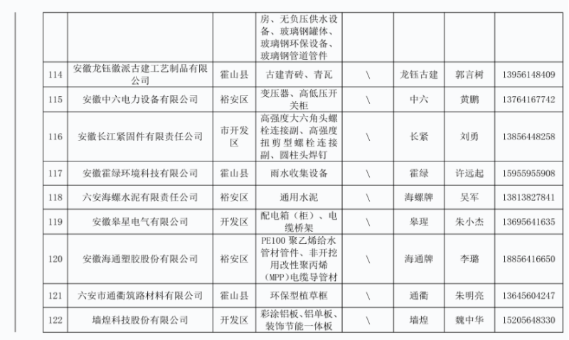 2. 六安市本地建筑工程建材企业产品目录汇总表