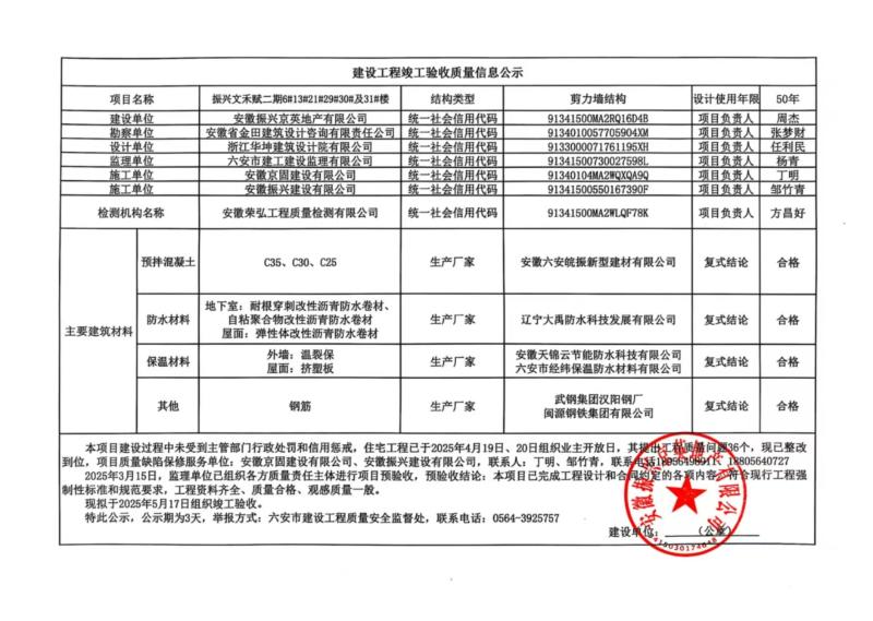 关于振兴文禾赋二期6#、13#、21#、29#、30#及31#楼竣工验收的公示