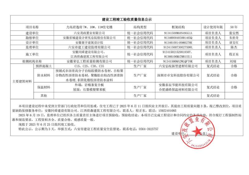 关于力高君逸府7#、10#、11#住宅楼竣工验收的公示