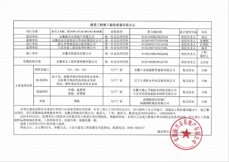 关于振兴文禾赋二期3#、5#、11#、12#、19#、20#、27#、28#楼竣工验收的公示