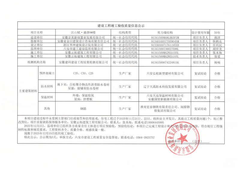 关于江山赋·盛唐8#楼竣工验收的公示