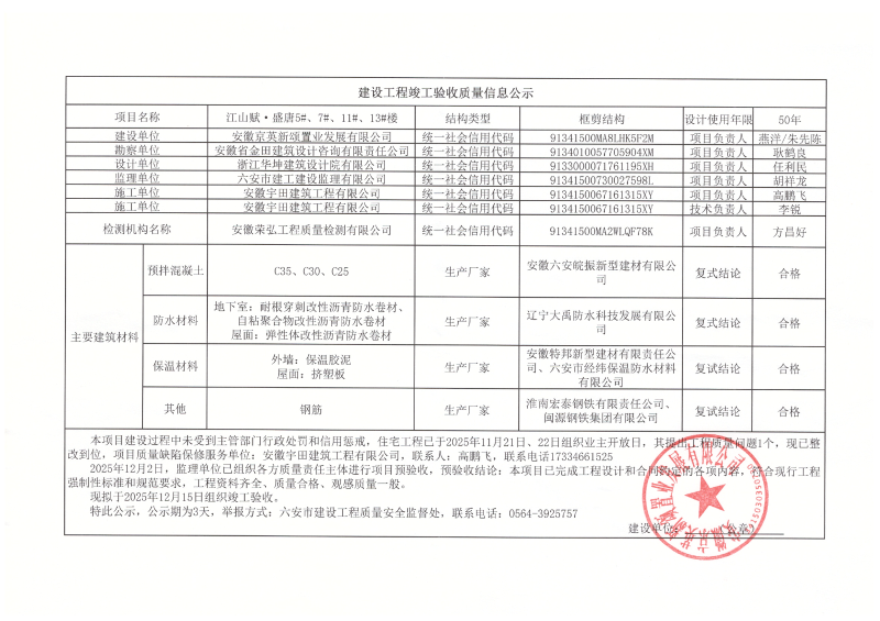 关于江山赋·盛唐5#、7#、11#、13#楼竣工验收的公示