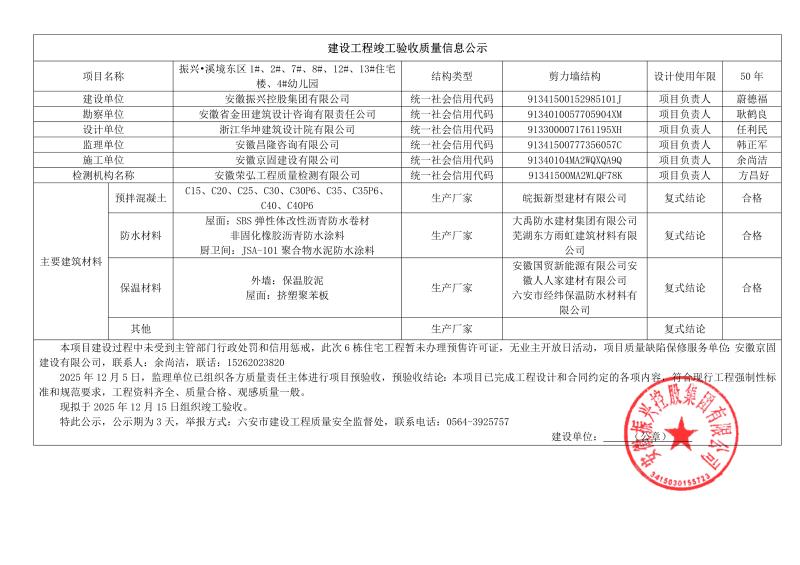 关于振兴·溪境东区1#、2#、7#、8#、12#、13#住宅楼、4#幼儿园竣工验收的公示