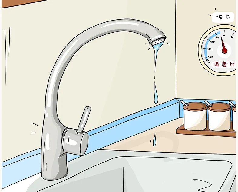 当寒潮来袭,只需在夜晚将水龙头保持一滴接一滴的细缓水流,便能让管道内的水持续流动,从而防止冻结。记得用桶接住水滴,既保管道,又惜水源。