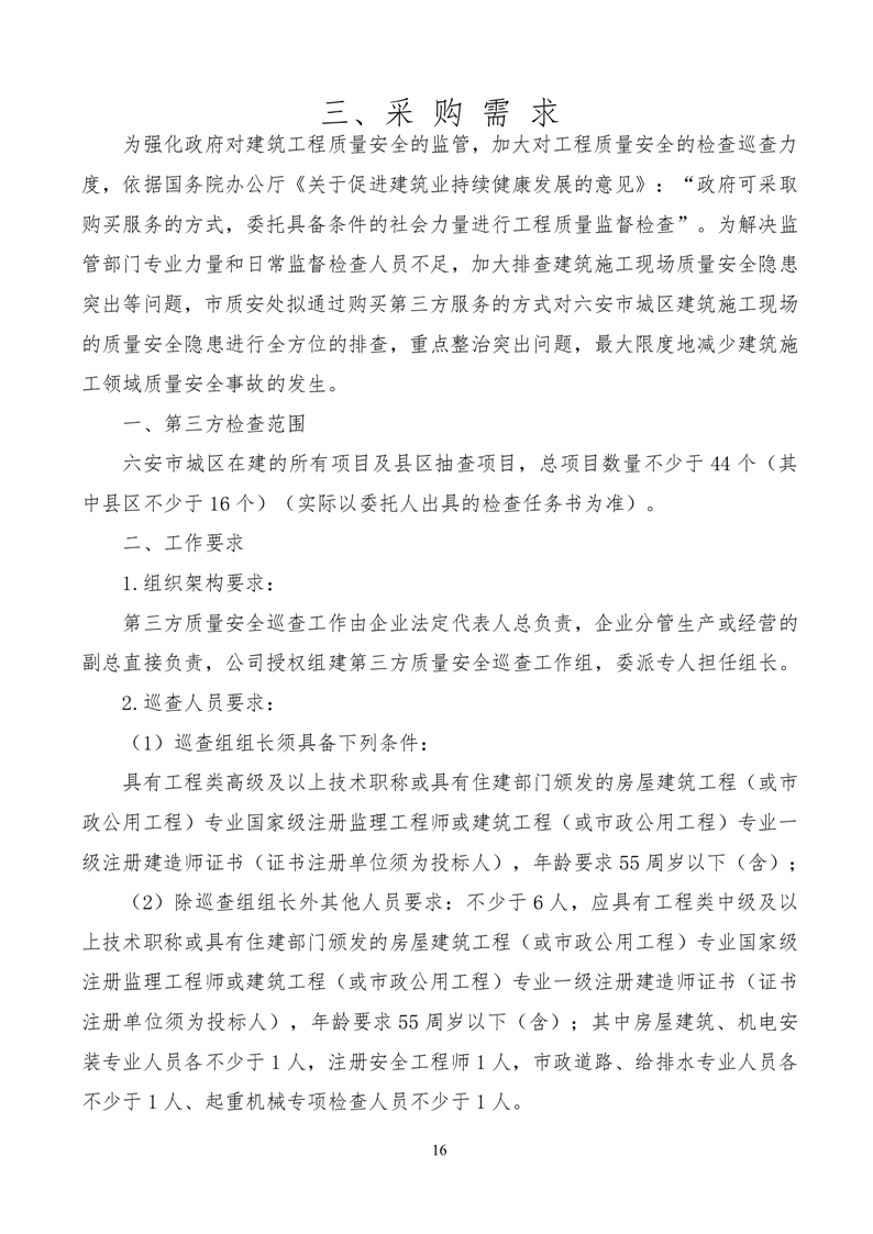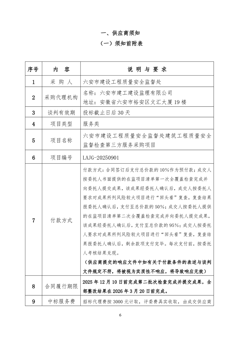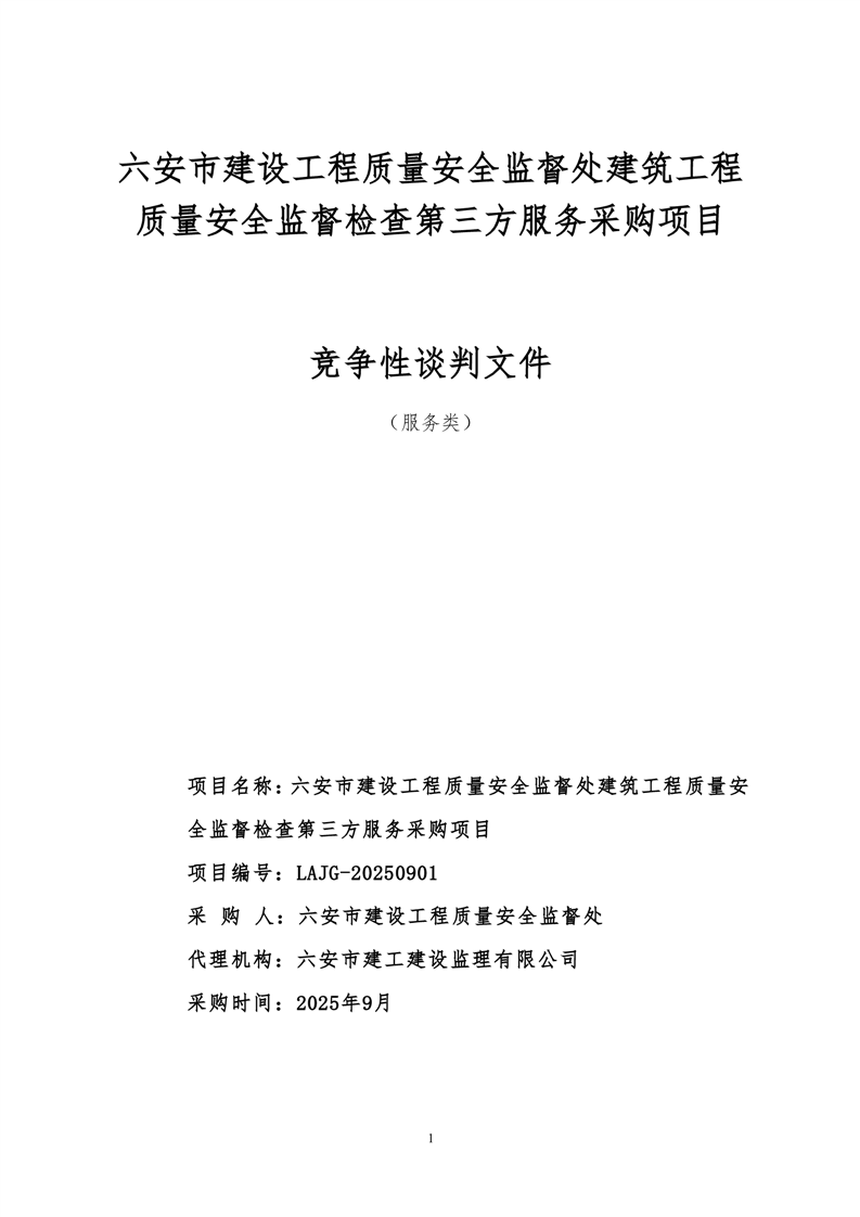 六安市建设工程质量安全监督处建筑工程质量安全监督检查第三方服务采购项目竞争性谈判文件