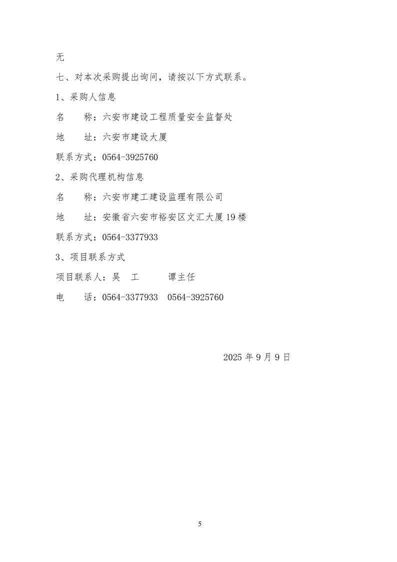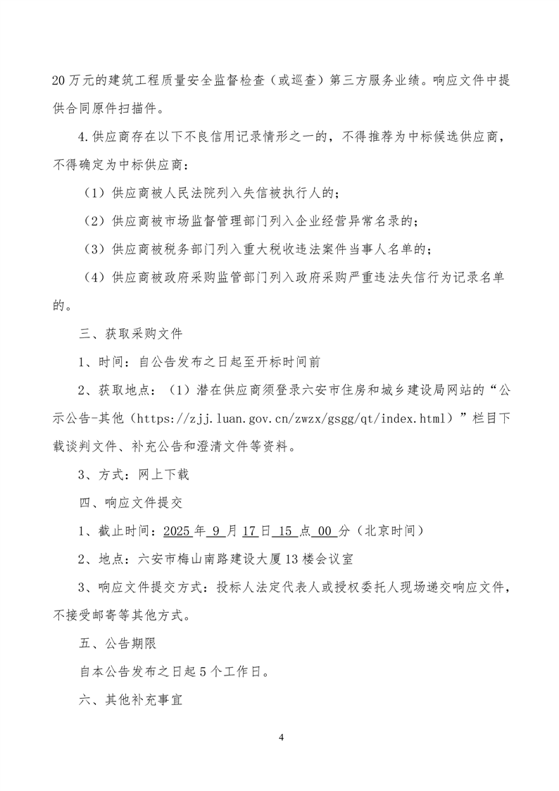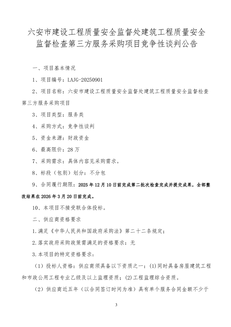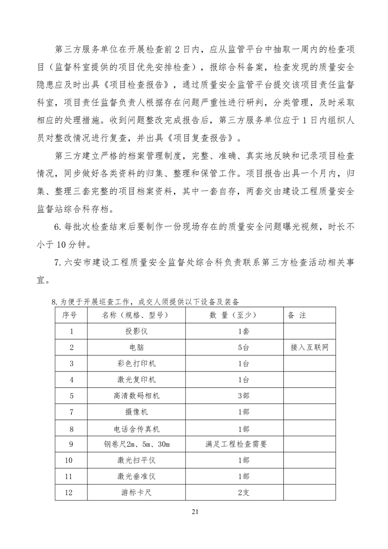 六安市建设工程质量安全监督处建筑工程质量安全监督检查第三方服务采购项目竞争性谈判文件