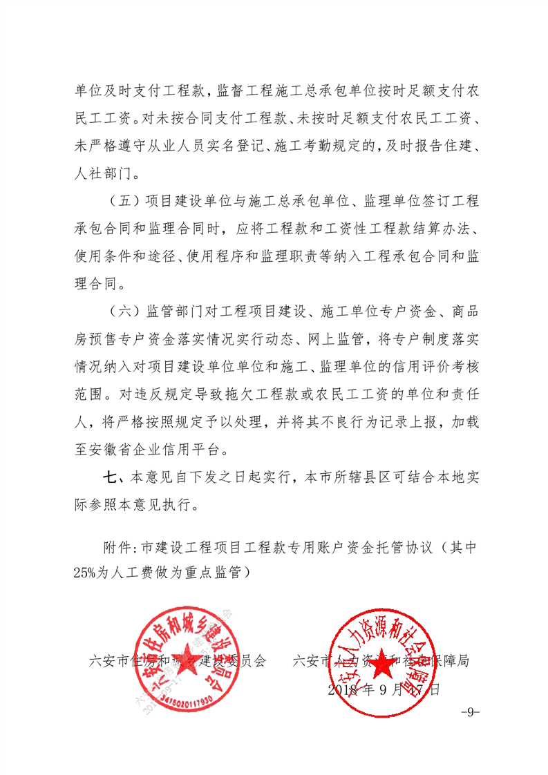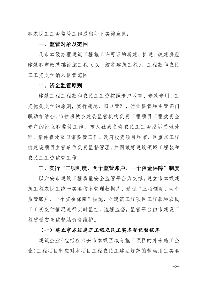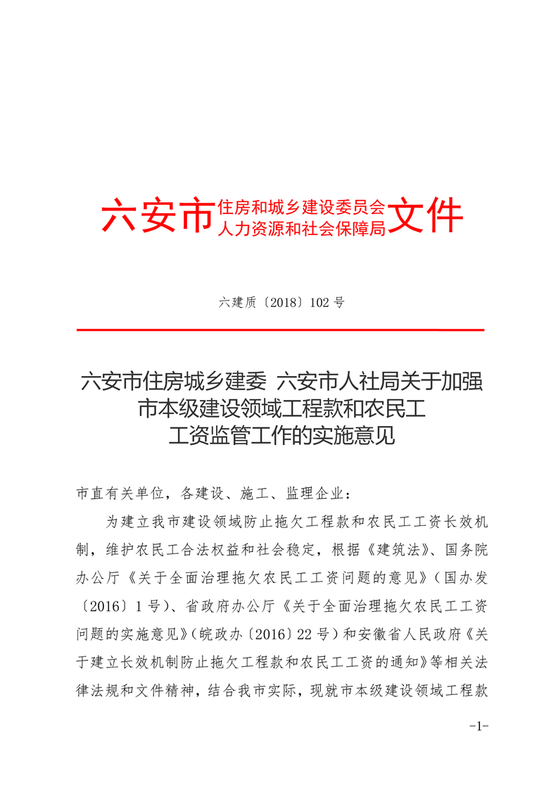 六安市住房城乡建委、六安市人社局关于加强市本级建设领域工程款和农民工工资监管工作的实施意见
