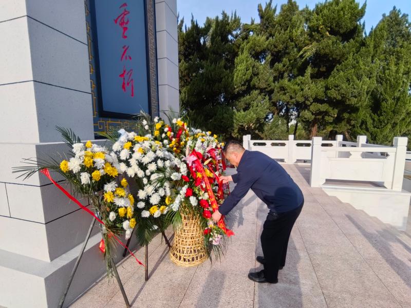 上午7时30分,迎着朝阳,活动在庄严的国歌声中拉开序幕。全体党员肃立,面对纪念塔向烈士默哀,深切表达对革命先烈的崇高敬意与无限哀思。伴随着深沉悠长的《献花曲》,系统年轻党员代表手抬花篮,将其摆放在烈士纪念碑前,局党组书记、局长李品缓步来到花篮前,整理花篮缎带。